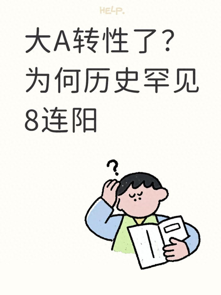 后台被一张漫画刷屏了:一个挠头的投资者看着“大A转性了?为何历史罕见8连阳”今天就从这张漫画的疑问出发,深度拆解8连阳背后的底层逻辑。